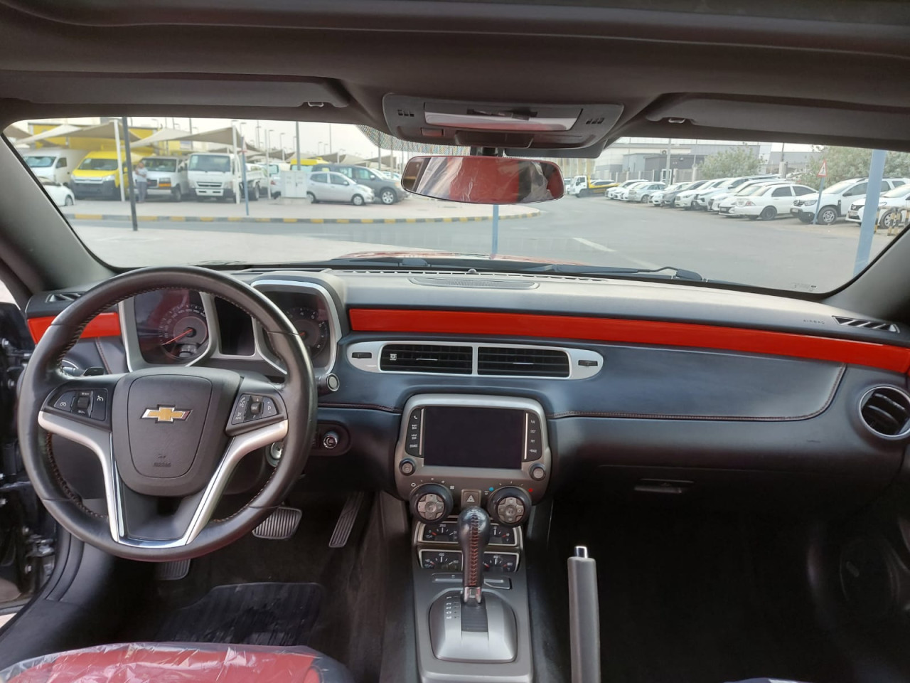 شيفروليه كمارو R S ذات لونين رمادى / برتقالى 6 سلندر موديل 2014 خليجى فتحة جلد مثبت سرعة تحكم رنجات حساسات جناح خلفى كشافات ضباب بحالة ممتازة
