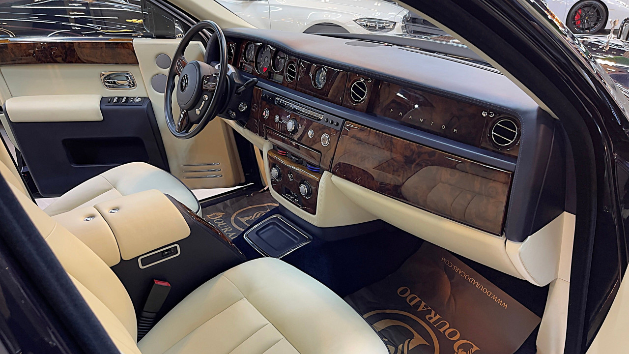 Rolls Royce Phantom Extended | Luxury Sedan Assembly Goodwood Used 2014 6.75L / V12 Cylinder 8 Speed Automatic Transmission 453 Horsepower Rear Wheel Drive GCC Specs Exterior Colour VELVET BLUE Interior Colour LINEN -------- Additional Features ---------- - Category Luxury sedan assembly Goodwood - Bluetooth Systems - Climate control - Cruise control - Leather seats - Sunroof - Parking sensor rear - Navigation systems - Rear camera - Power seats - USB - Tuner/radio - Parking sensor front - Self-steering wheel - Analog clock - AUX audio in - Rear tv screens - Air conditioning - Alarm - Power locks - Power seats with memory - Power windows - Fog lights - ABS - Airbags (Front & side) - Premium paint - Adaptive lighting - Rear wheel drive - Tinted windows - Xeon headlights - Tire pressure warning system Dourado luxury car dealer is one of the best car dealers. The showroom is located in Dubai (UAE) and offers a wide range of LUXURY and sport cars also limited-edition cars with an inventory combining over 300 cars such as Rolls Royce, Bentley, Lamborghini, Ferrari, Porsche with the best prices in the market. Explore our latest offerings on our company website and stay updated on our inventory, news and promotions by searching for Dourado Luxury Cars on Facebook, Twitter, Instagram and YouTube. For more information contact us on our WhatsApp number +971547065448 or visit our showroom located at Rawabeh Building - Al Quoz - Al Quoz Industrial Area 1 - Dubai.